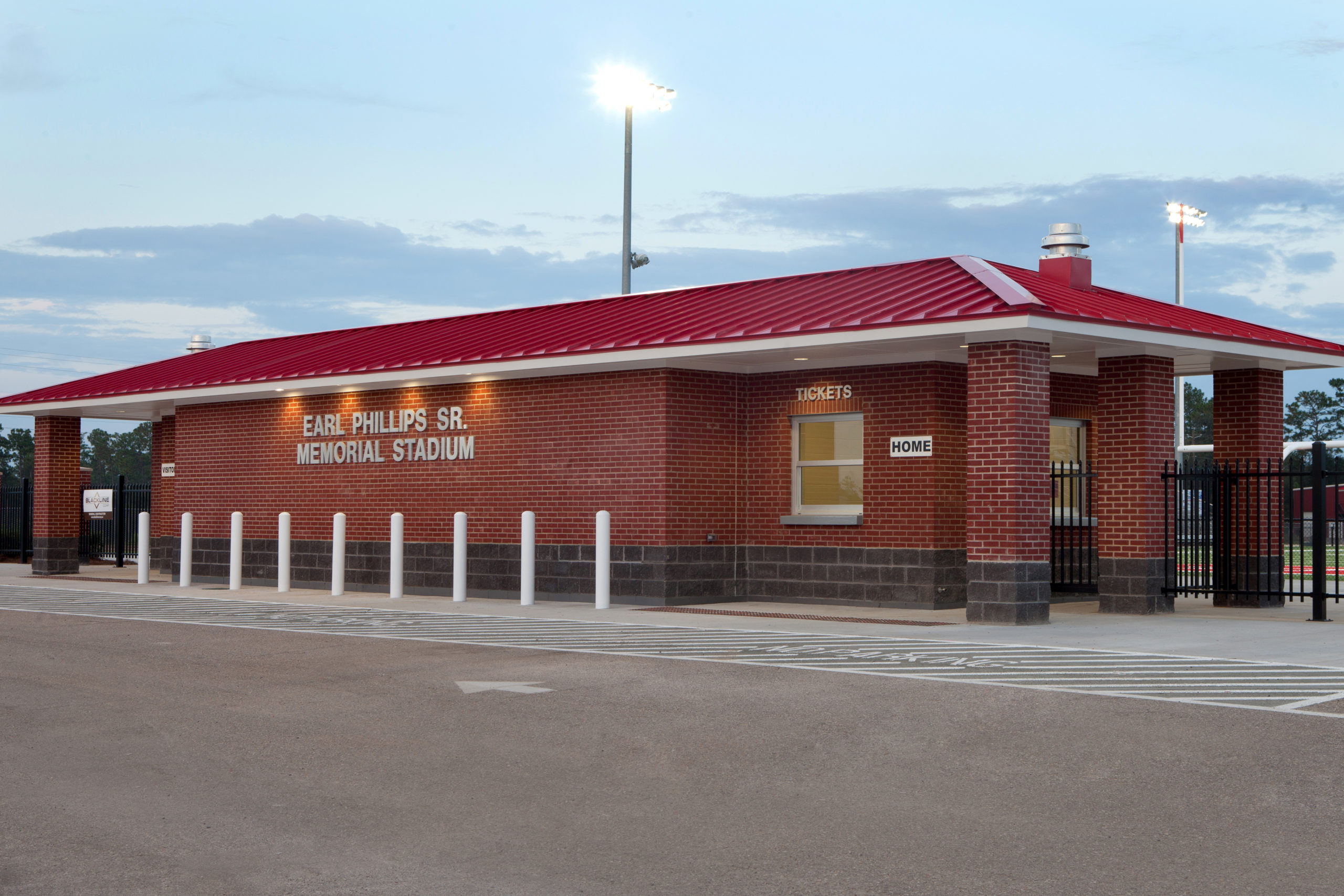 This project included the demolition and removal of existing fences, sidewalks, parking areas, restrooms, and ticket booths. A new ticket and concessions stand was constructed that also houses the electrical equipment to operate the field lighting. A complete remodel of the public restrooms was performed, including upgrading areas to meet ADA compliance.